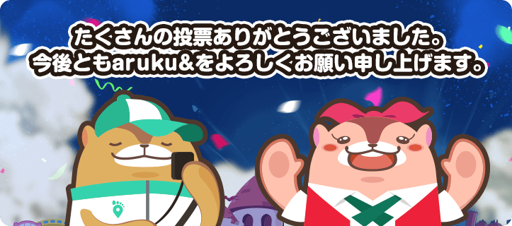 皆様の投票により、「あるくと住民」と「あるくとキャンペーン」の人気ナンバーワンが決定しました。