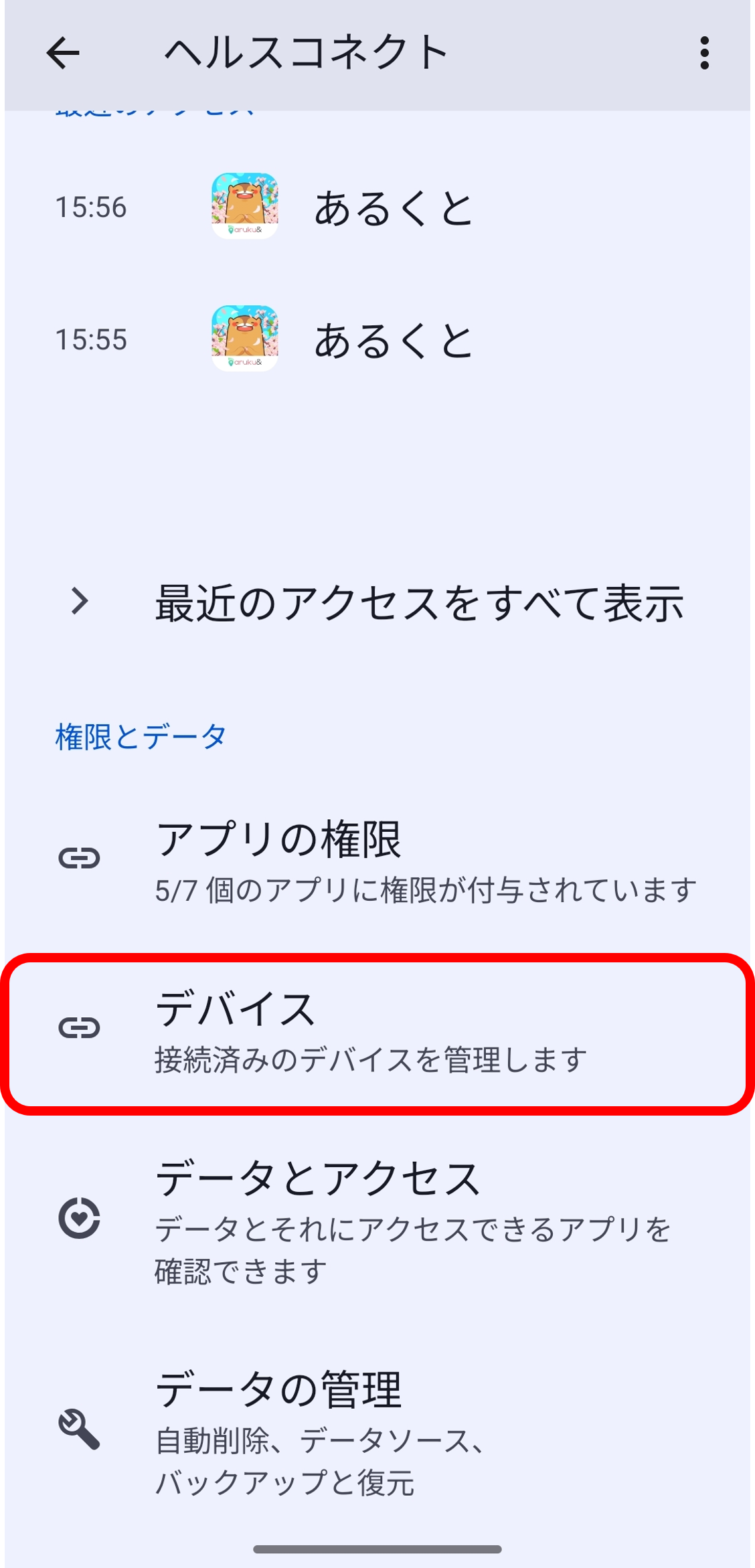 ※ヘルスコネクトの設定を実施する際に、デバイスが表示されない場合はお試しください。