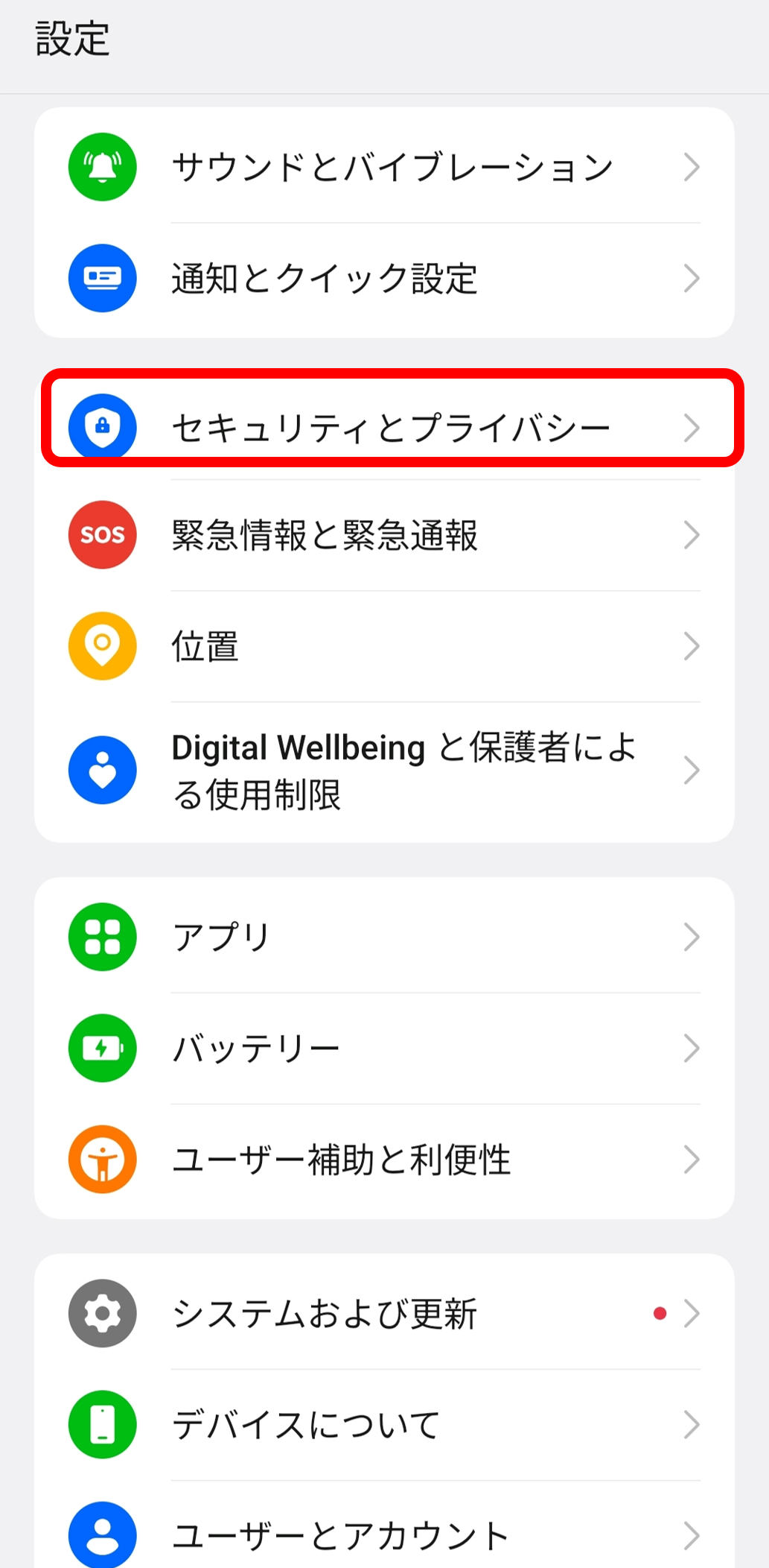 2.セキュリティーとプライバシーをタップします。