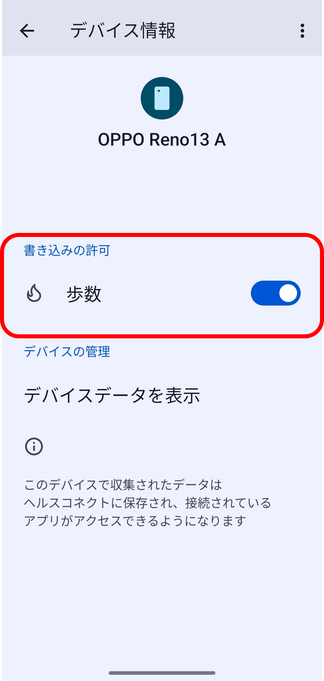 ■ヘルスコネクトの歩数の書き込みをONにする