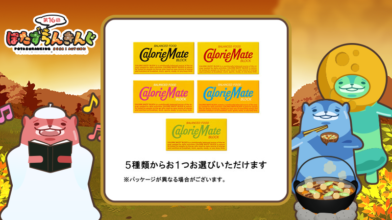 (1)【ぽたすらんきんぐ秋】カロリーメイト ブロック 2本入り 5種類から1つ(チーズ味・チョコレート味・メープル味・バニラ味・フルーツ味) 450名様