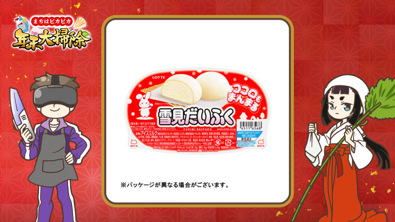 新年を気持ちよく迎えるため、年末の大掃除をはりきっている住民や豪華賞品が登場します。