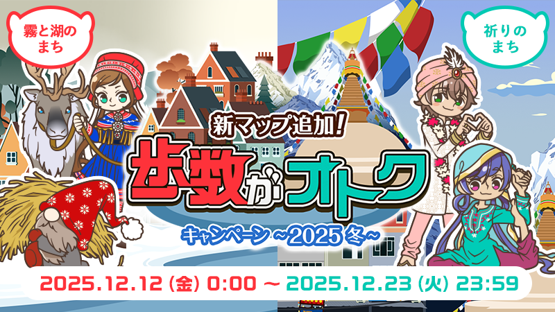 12/12(金)0:00より新マップ追加!歩数がオトク 2025冬が始まりました!
