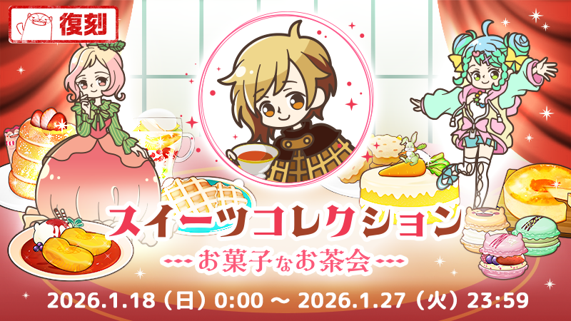 1/18(日)0:00より過去開催したスイーツコレクション~お菓子なお茶会~の住民が地図上に再登場!