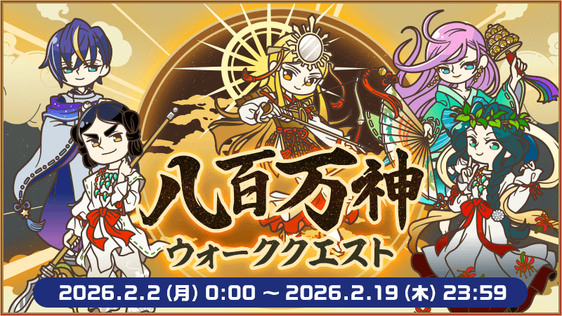 2/2(月)0:00より八百万神ウォーククエストキャンペーンが始まりました!