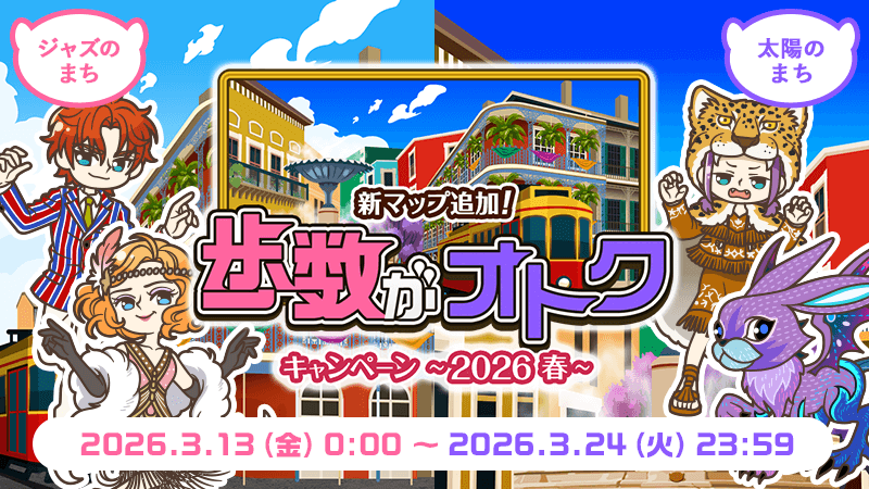3/13(金)0:00より新マップ追加!歩数がオトク 2026春が始まりました!